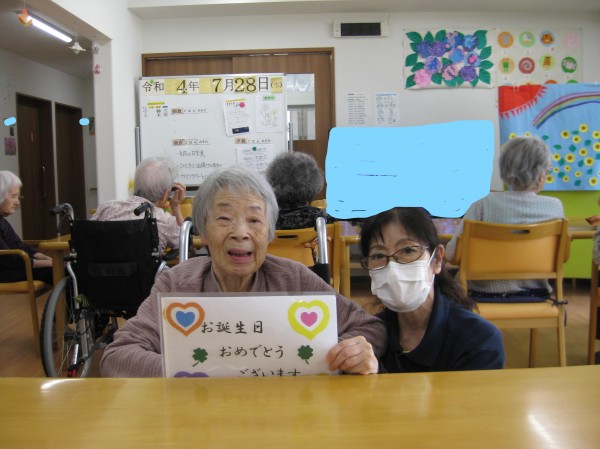 こんにちは! グループホームみんなの家・あきがせの介護ブログです! よろしくお願いいたします。 1階では7月に2名の方がお誕生日です。お誕生日でお祝いをしたご様子をお知らせいたします!!