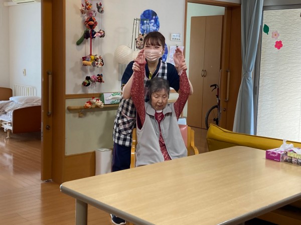 1Fには車いすなどの方もいらっしゃいますが、皆様ご自身で出来る範囲で参加しています。