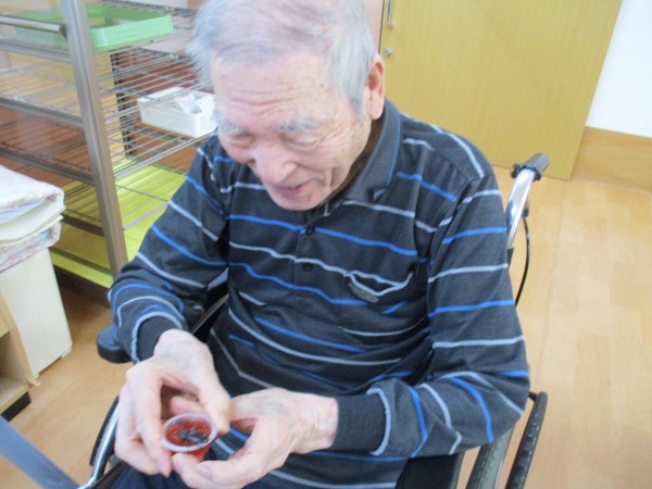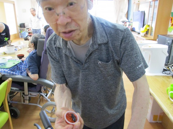(ノコギリクワガタの為にゼリーを用意していたので食べさせてみたら美味しそうに食べていました(*^^*))