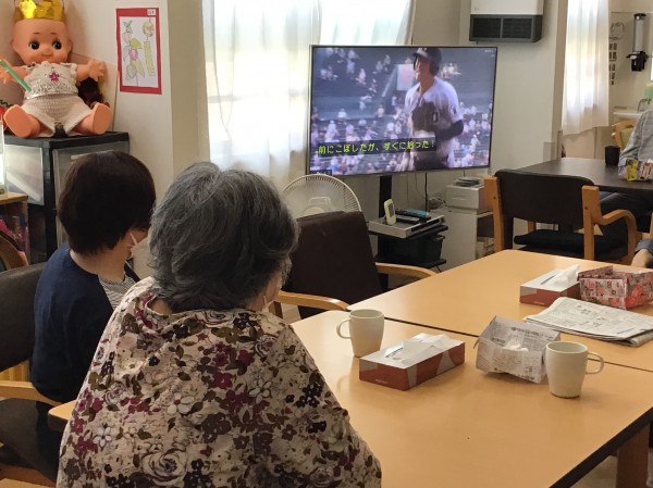 今朝は利用者の皆様が気になっていた甲子園を朝の会の前に