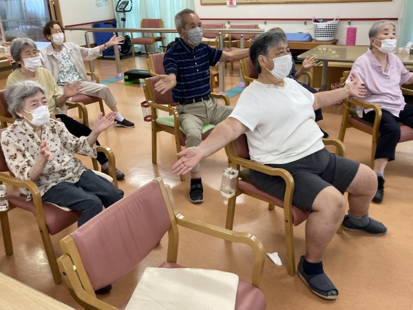暑い中でも岡田先生、体操の程ありがとうございます!その元気にご利用者様もしっかり先生の動きについていき、声もしっかりと挙げていました( ^)o(^ )