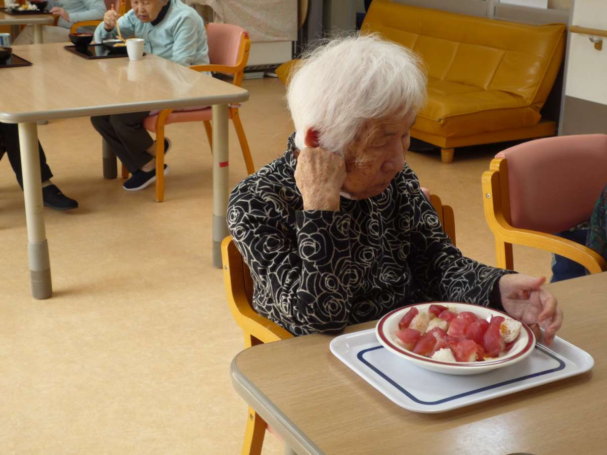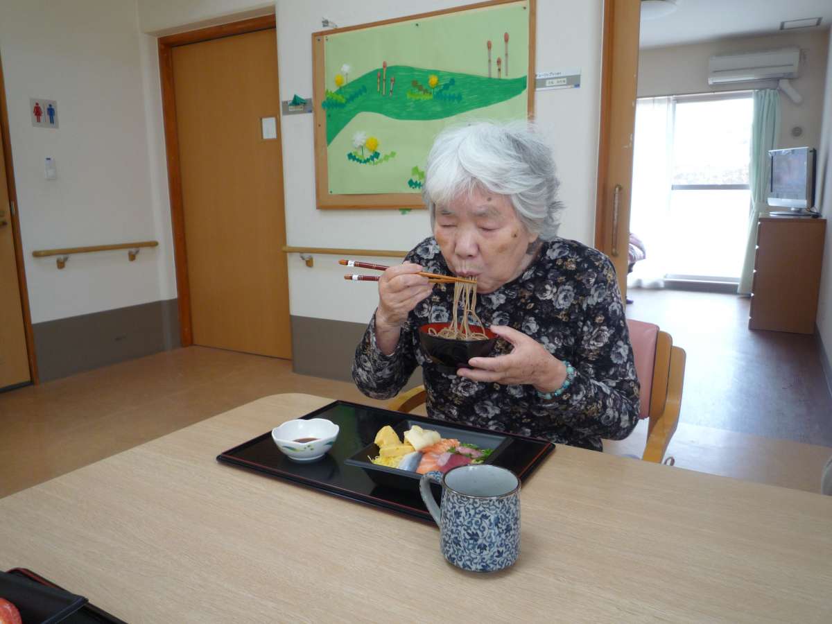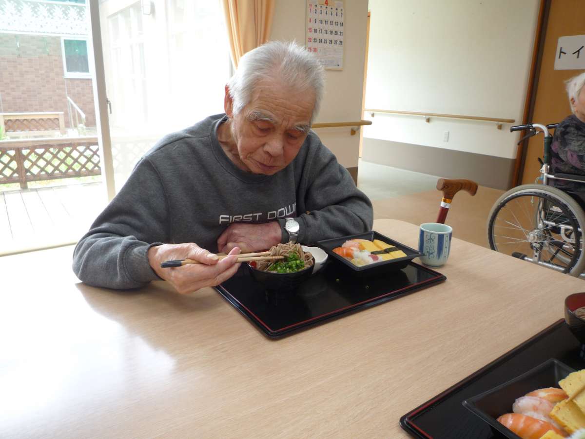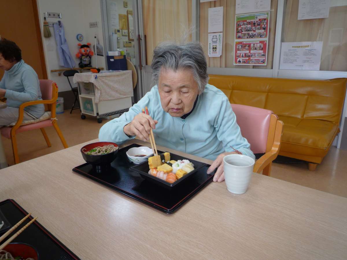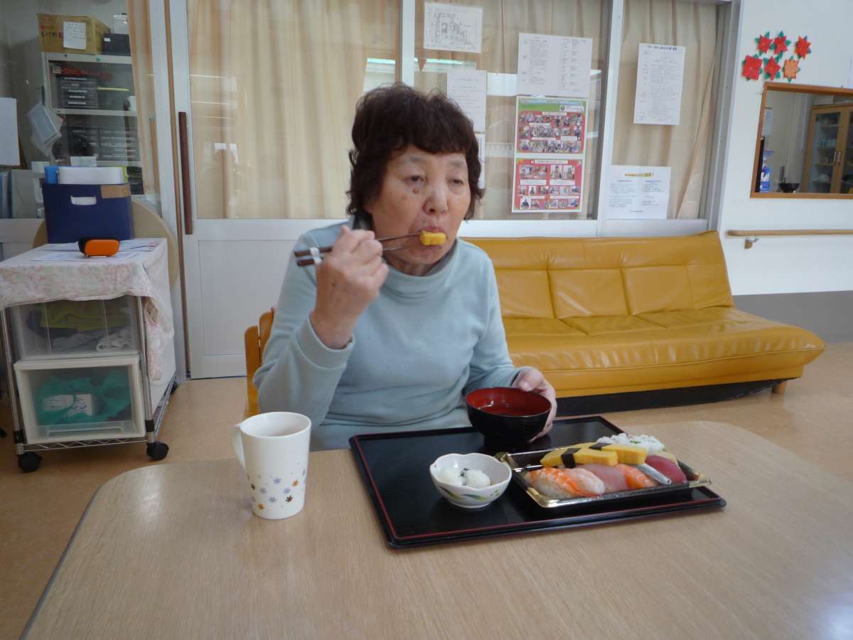 ホームで出前寿司をとり、召し上がられました。