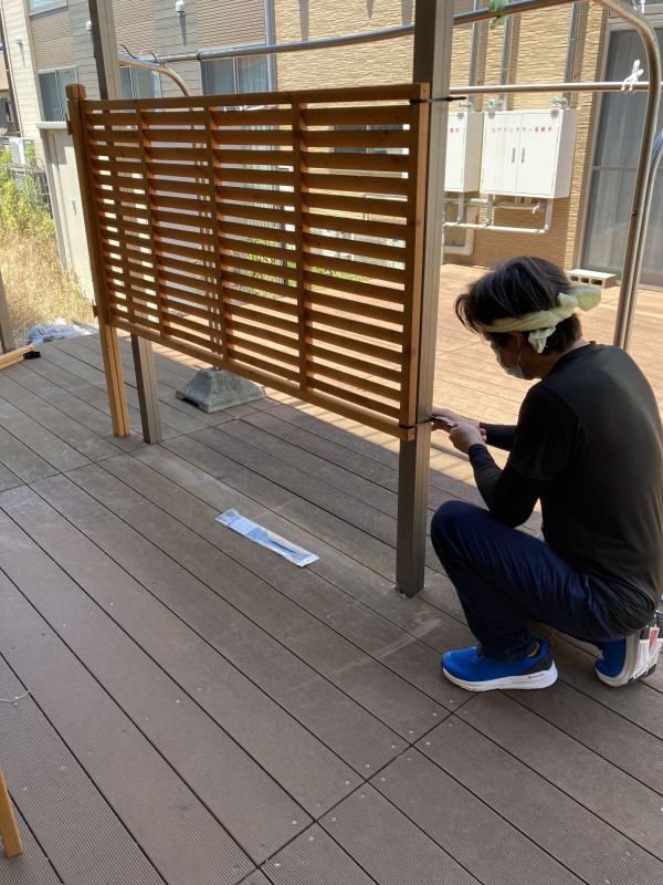 テラスの目隠し完成しました!(^^)! 鳩も覗きに来たようですね♡