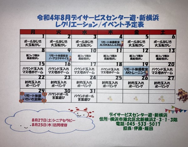 8月レクカレンダー♪