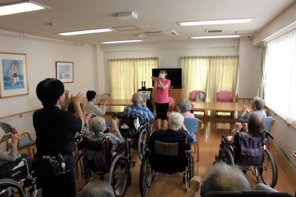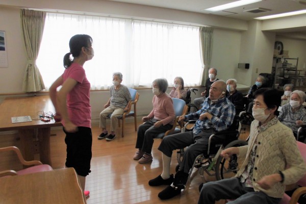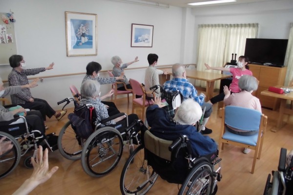 お客様とともにスタッフも参加しますが、意識して動かすことで体の筋肉がほぐれていくのを感じます。
