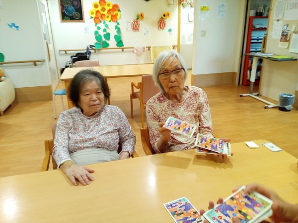 暑い日の午後に、久しぶりに特大トランプを使って七並べをして遊びました!