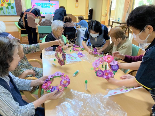 先日、みなさんでお花リースのクラフトレクを開催しました♪
