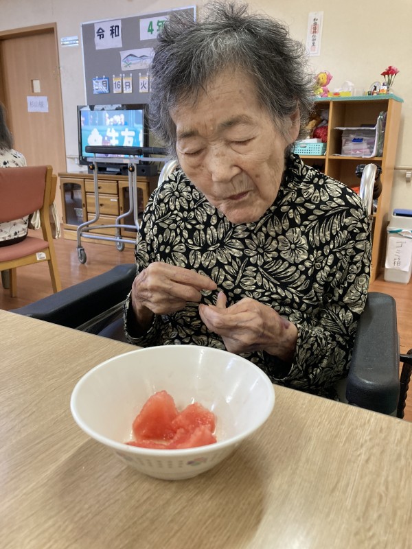とろみ付きジュースにして飲んで頂いたところ