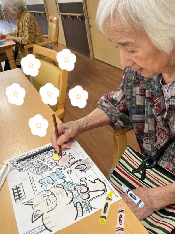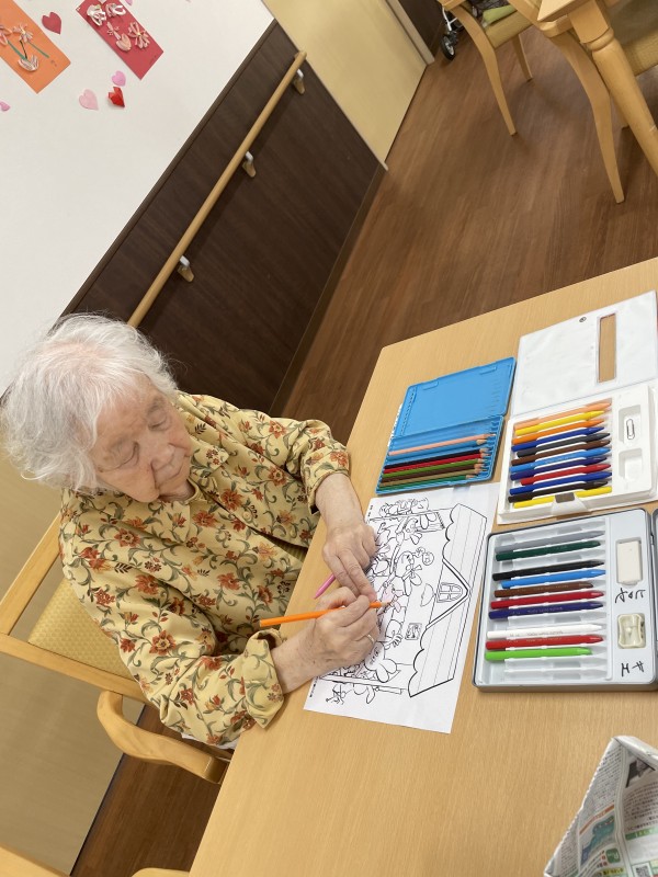 絵を描くことがお好きなご利用者様からのリクエストで、今回は塗り絵をすることになりました。