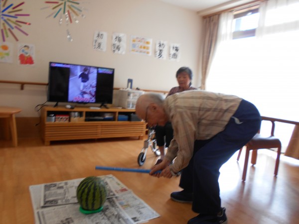 なので夏の風物詩スイカ割りを行いました♬
