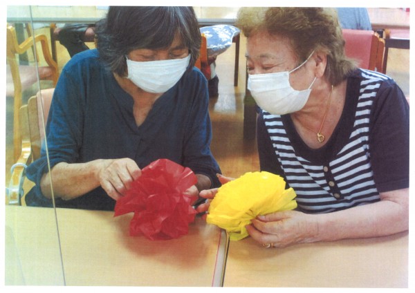 本日は、その準備で飾りなど作っていただきました。皆様、とっても器用です。職員より手早くどんどん作ってくださいました。