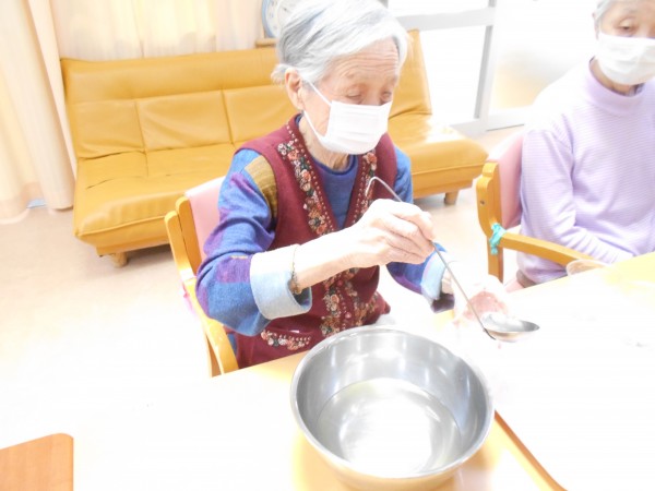 先日、ホームにて利用者様とゼリー作りを行いました。