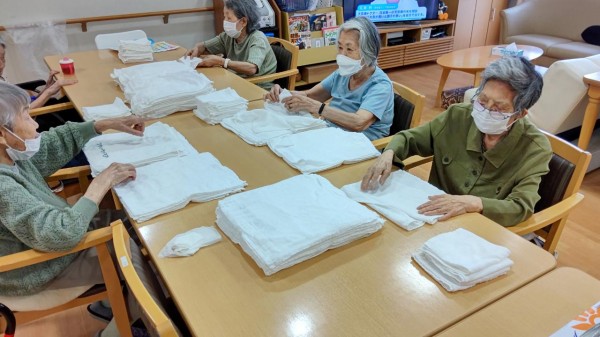 今日は皆さんでタオルたたみをお願いしました!