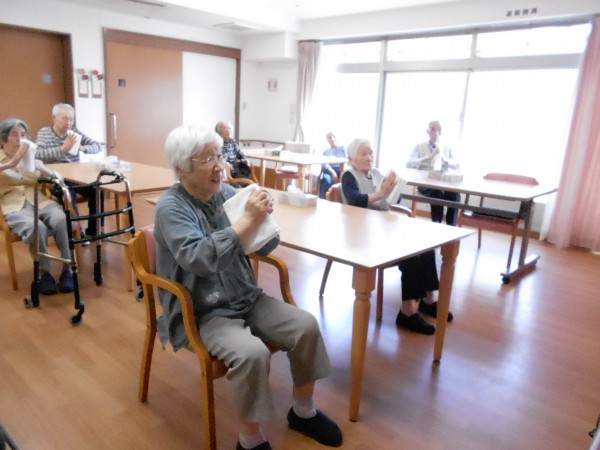 2階に1〜3階の入居者様が集まってトレーニングを行いました!!
