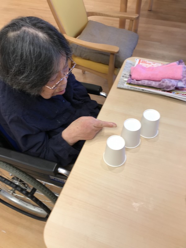 紙コップの中に紙の玉を入れてシャッフル!?
