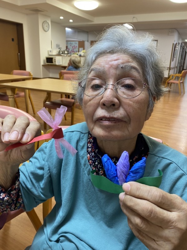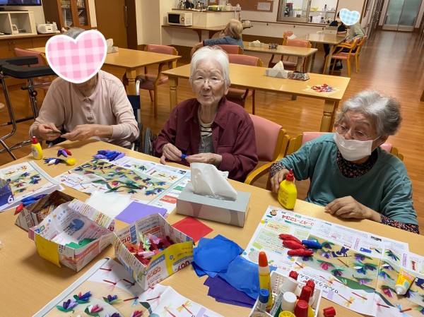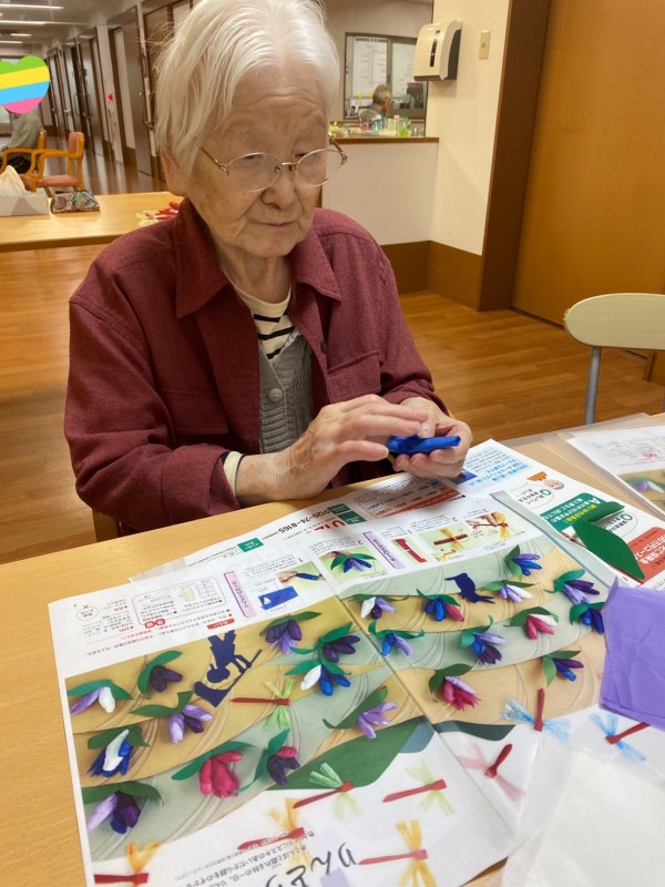 『りんどうって山のお花よね♬』『難しいと思ったけど、作り方を覚えたよ』『これは指先を沢山使うね〜』など、皆様和気藹々と作業されていました。