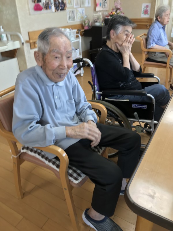 なんでしょう・・・手を取り合ってお話しされています。いつもは離れた席に座っていてもお互い近くに寄ってコミュニケーションを取っていらっしゃいます(´ω`*)