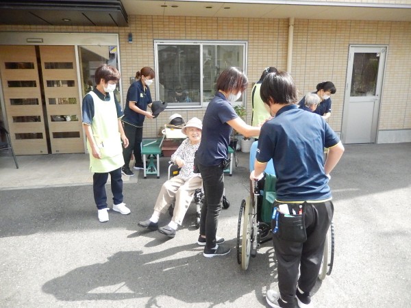 まだまだ、日差しが強い日でしたので、帽子を個々に選んでもらって、被っていただきましたぁ(^_-)