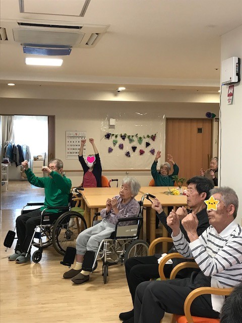 感染予防の為、集団ではなく、各階に分かれて参加しました。(^_-)-☆