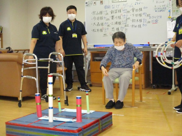 こんにちは、デイサービスセンター遊・西東京です。今日の運動レクレーションは『輪投げ』です!