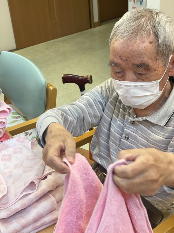 デイサロンかたくりの里六郷では、みなさま到着後少し落ち着いたころに、ど~~~~~~~んとテーブルに洗濯物が積まれます( *´艸`)