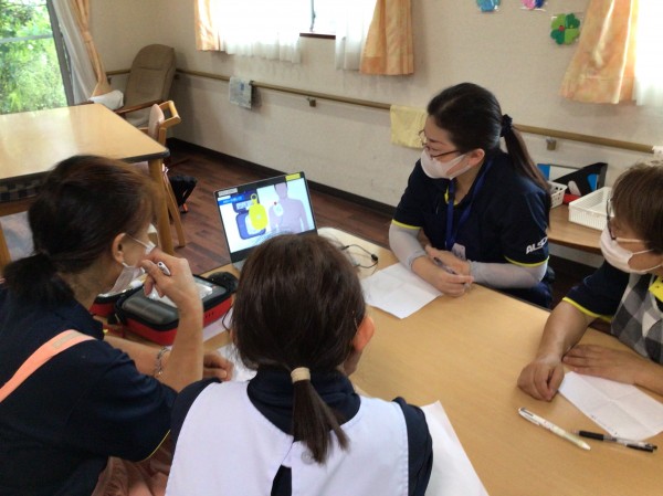 訓練終了後、職員はAEDや搬送法の講習を受けました!