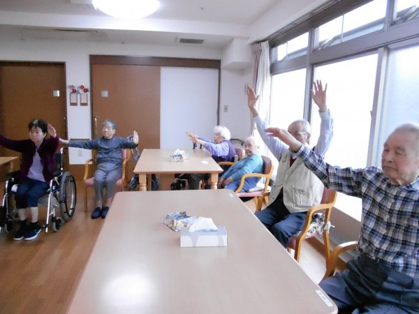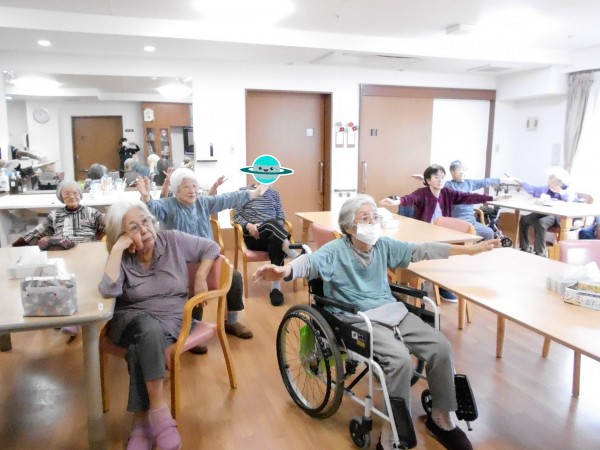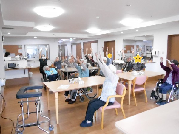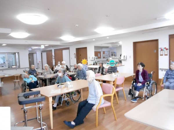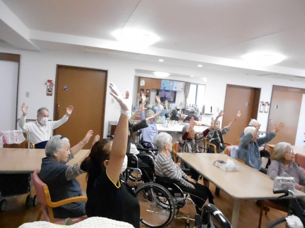 本日、2Fと3Fのご利用者様でリモートのいきいきリズム体操を行いました。