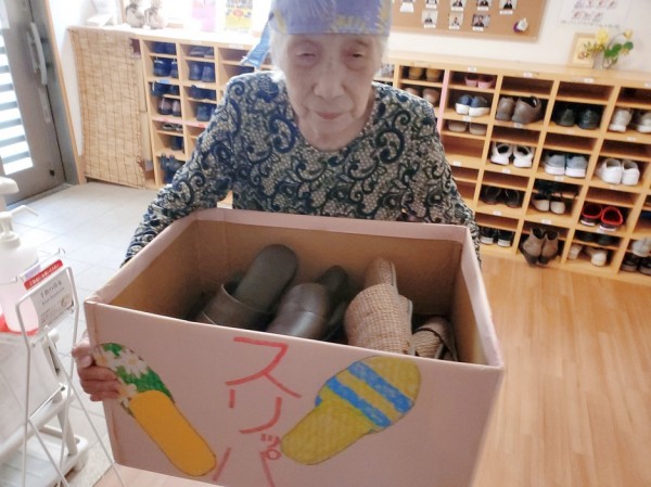 皆様に今はいているスリッパを箱めがけて