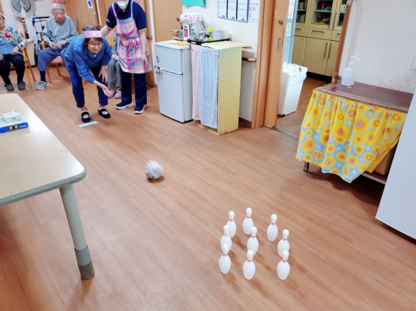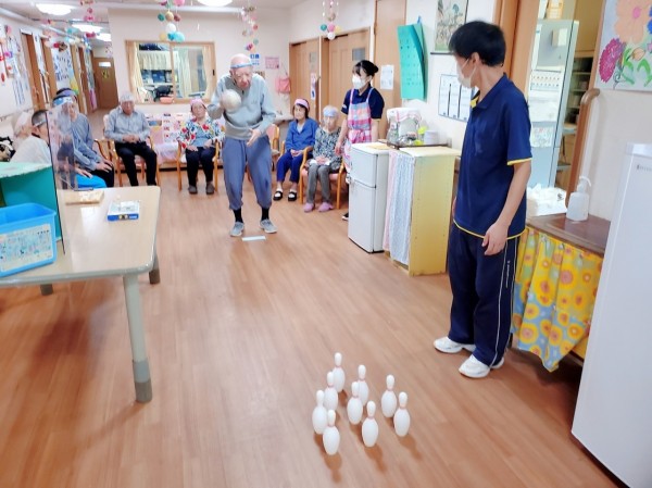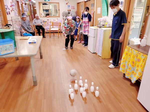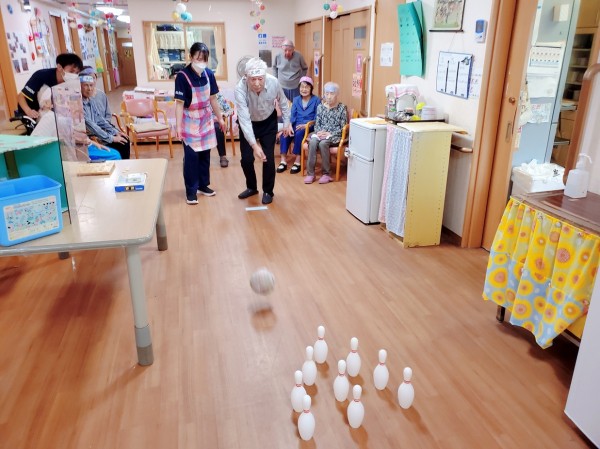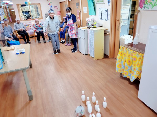 ●〇グループホームみんなの家・川崎久地「中継!敬老の日大感謝スペシャル!1階編前編~「レッツスリッパ飛ばし・ボーリング!」〇●