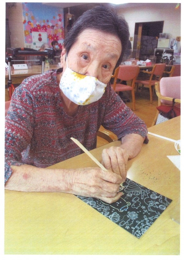 削り絵や折り紙、編み物、ぬりえ、脳トレにパズル。興味のある事を、ご自身で選んで楽しんでいただくレクリエーションです。