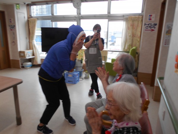 ひょっとこのお面をつけていましたが、なぜか「●●さんね!やっぱり!」「●●ちゃんやろ?」とばれてしまう職員が一名…。