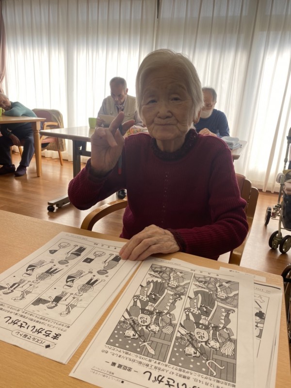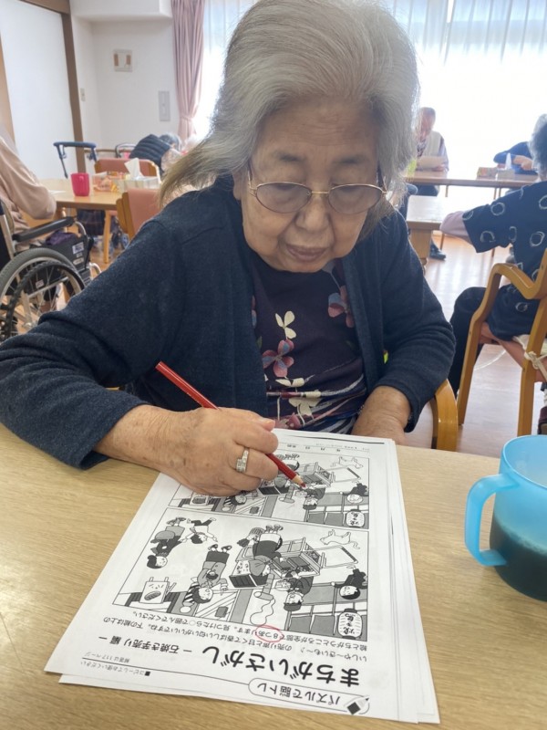 と、同席の方々と談笑されながら取り組まれる方。