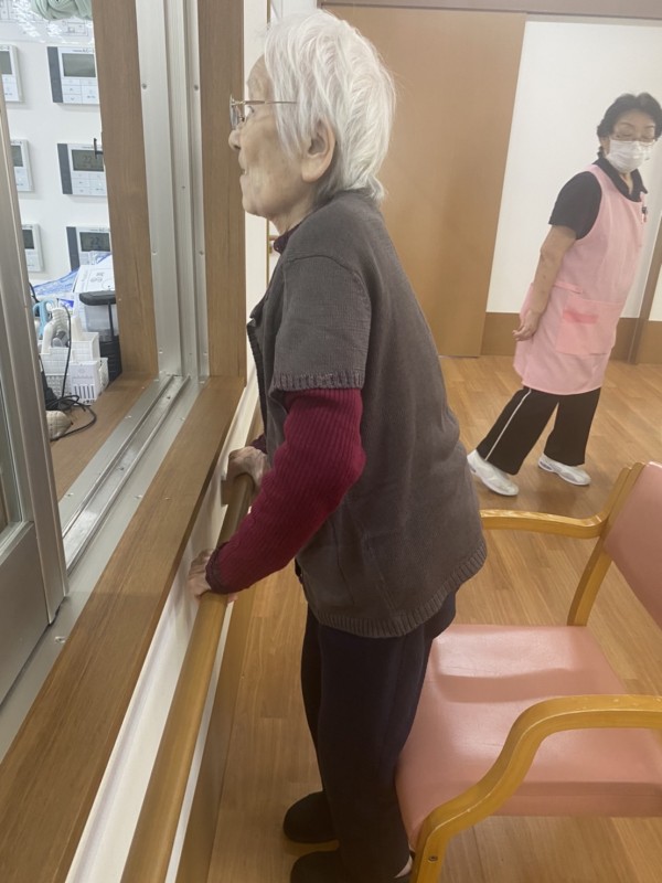 ◉立ち上がりのリハビリをスタッフと一緒に一生懸命行われる方。