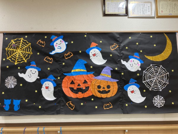 玄関が一気にお月見からハロウィン仕様に壁画が変更になりました♬