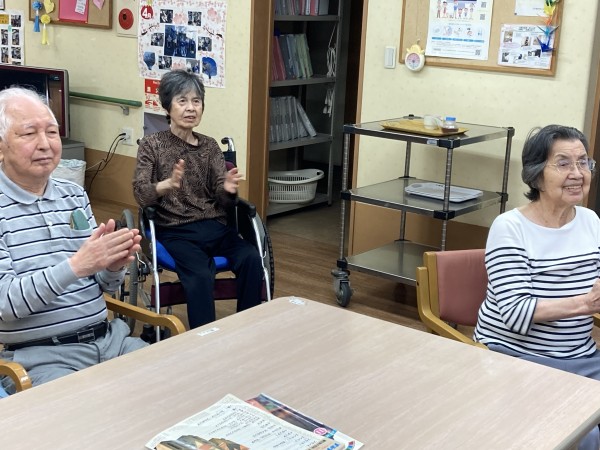寒そうだねと外を気にされていたので、ならば!と身体を動かして頂きましたw 体操で体を動かして頂き、声も出すので自然と身体が熱くなったようで「暑いね~」と申されたので”計画通り”です。