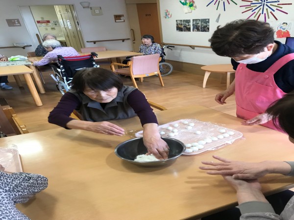 もちろん皆様と一緒に手作りいたしました♪団子作りの素早さには職員も驚きました!