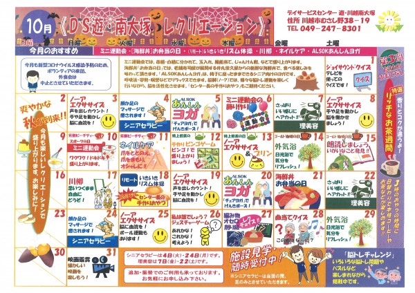 10月の【レクリエーションカレンダー】のご紹介です。