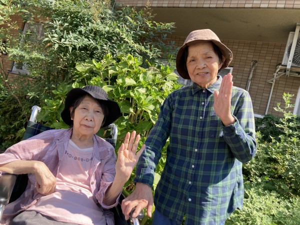 秋晴れでしたので、1階入居者も外へ外気浴に出てみました。