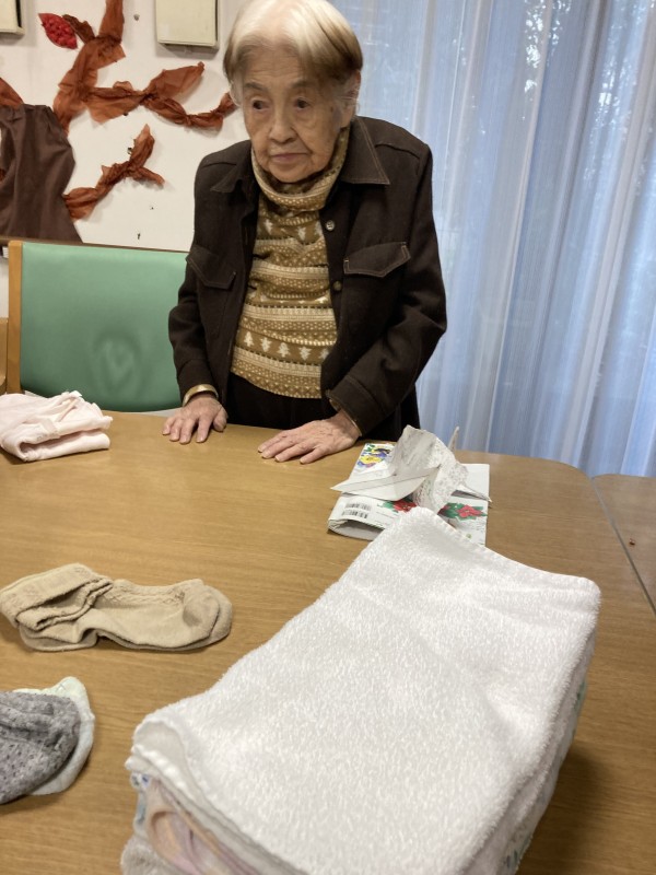 今日は洗濯物をご利用者様に畳んで下さいました。