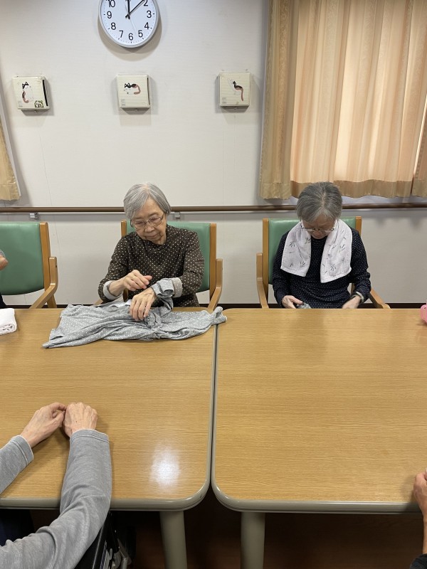 毎日、洋服やタオルなど洗濯していますが、洗濯物畳みを入居者様にお願いしています。