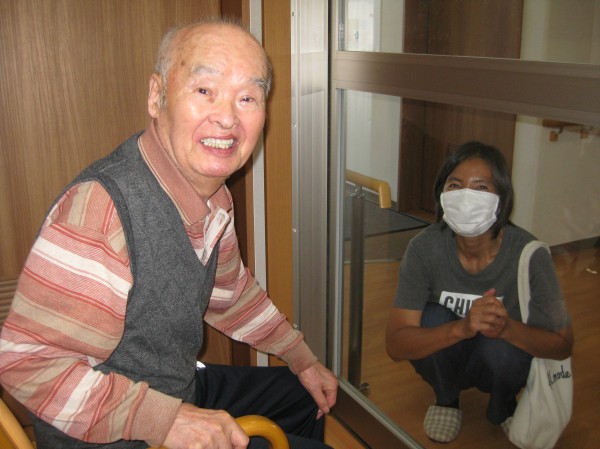 お嫁様が来られガラス越しの面会のご様子です!! 果物の差し入れがあり美味しく召し上がられていました( ^ω^)・・・ 『いい嫁なんです』とお話しされていました!(^^)! 娘様お2人でのガラス越しの面会のご様子です!! 渋皮煮をお持ちになられ美味しく召し上がられていました( ^ω^)・・・ 『好きなの(笑)』と笑顔で答えられました!!