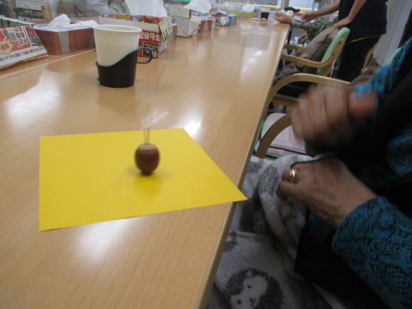 昔を懐かしむ楽しいいおもちゃが出来ました。昔は神社の裏でドングリ拾いしてよくコマを作ったわ。タダでこんな面白いのを作るんだからいい時代だったね。と昔の話で盛り上がりました。