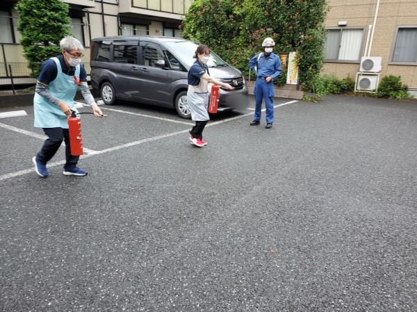 水消火器の訓練は川崎久地、川崎久地2の職員合同で実施しました。