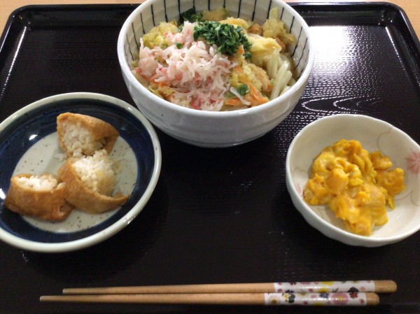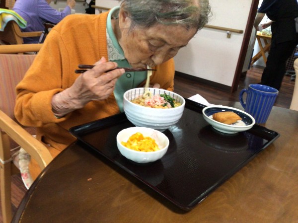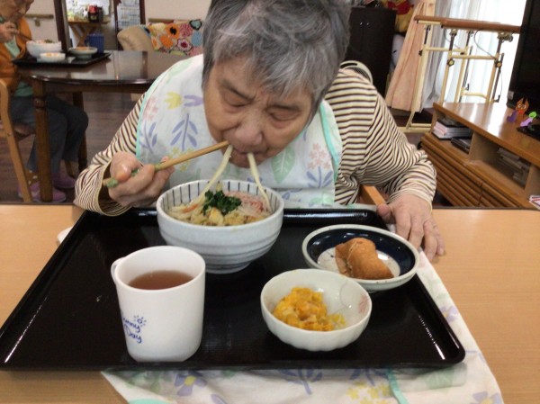 うどんのほかにお稲荷さんもありました。皆さん”ズルー、ズルルー”と美味しそうにうどんを啜っていました!!