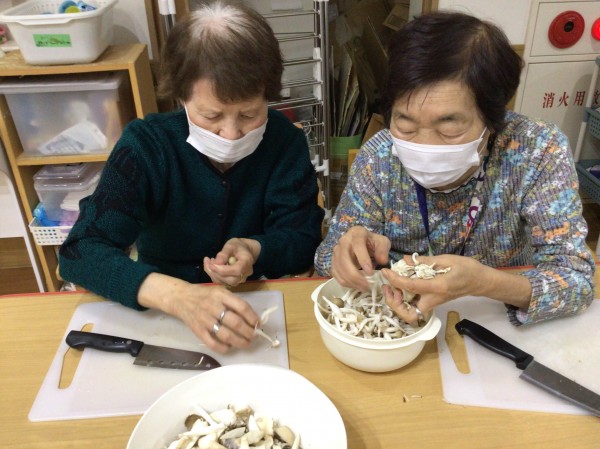 久しぶりの調理レクリエーションで皆さんあれやこれやの雑談しながらとっても楽しんで参加していました。