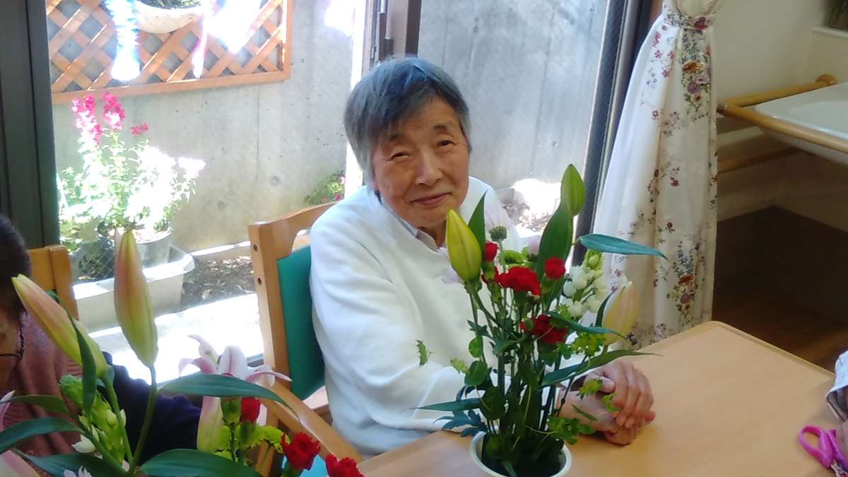 5月14日(月)はグループホームと合同でフラワーアレンジメントをしました!!みなさん数を重ねる毎にお花の扱いが上手になっています(*^_^*)ユリの花がいい香りでした♪