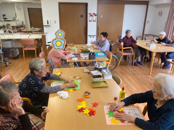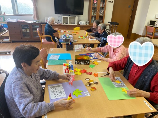 手指のリハビリの他に、秋の季節を表現する事で今を意識し季節感を味わう。