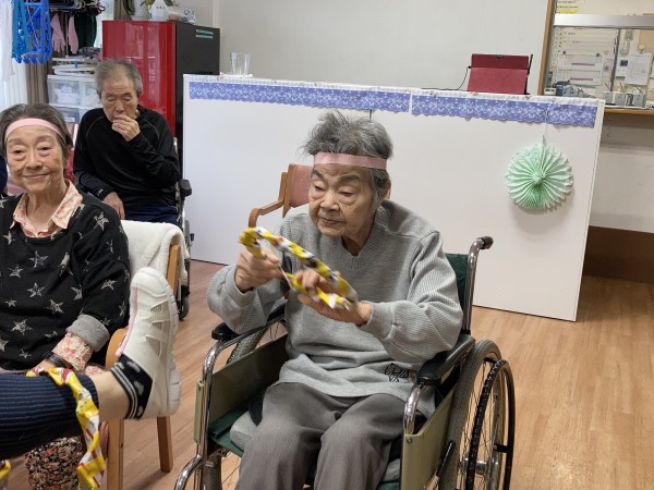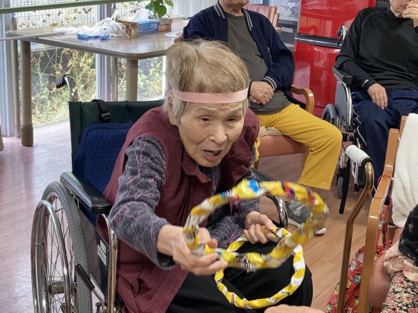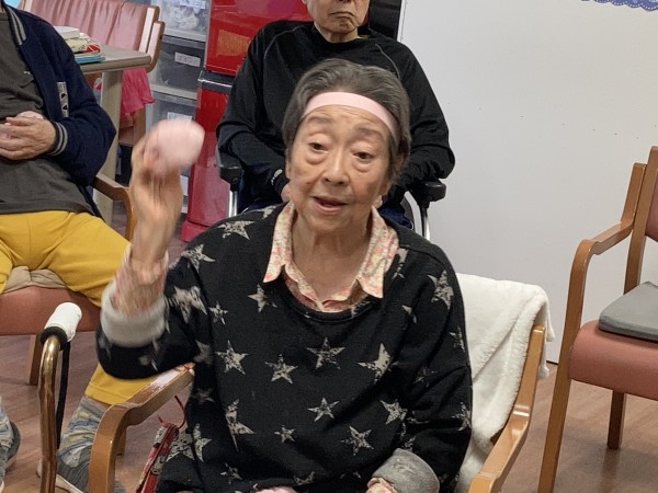 職員さんとご利用者様でパス(トス)を