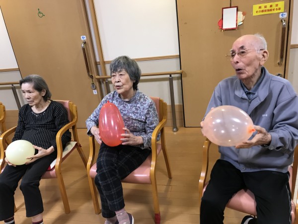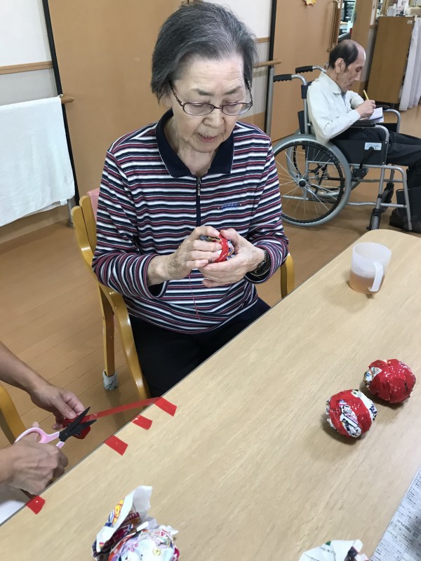 玉入れの玉や輪投げ・・・当日風船を膨らます作業に女子職員は大騒ぎです。