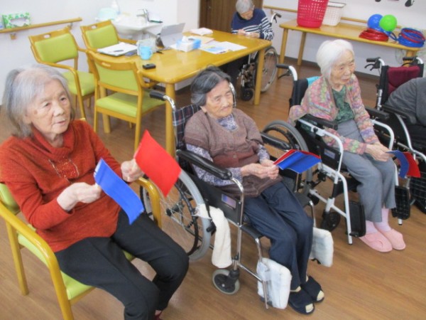赤青旗揚げ・玉入れ・輪投げ・風船飛ばしを行いました!!